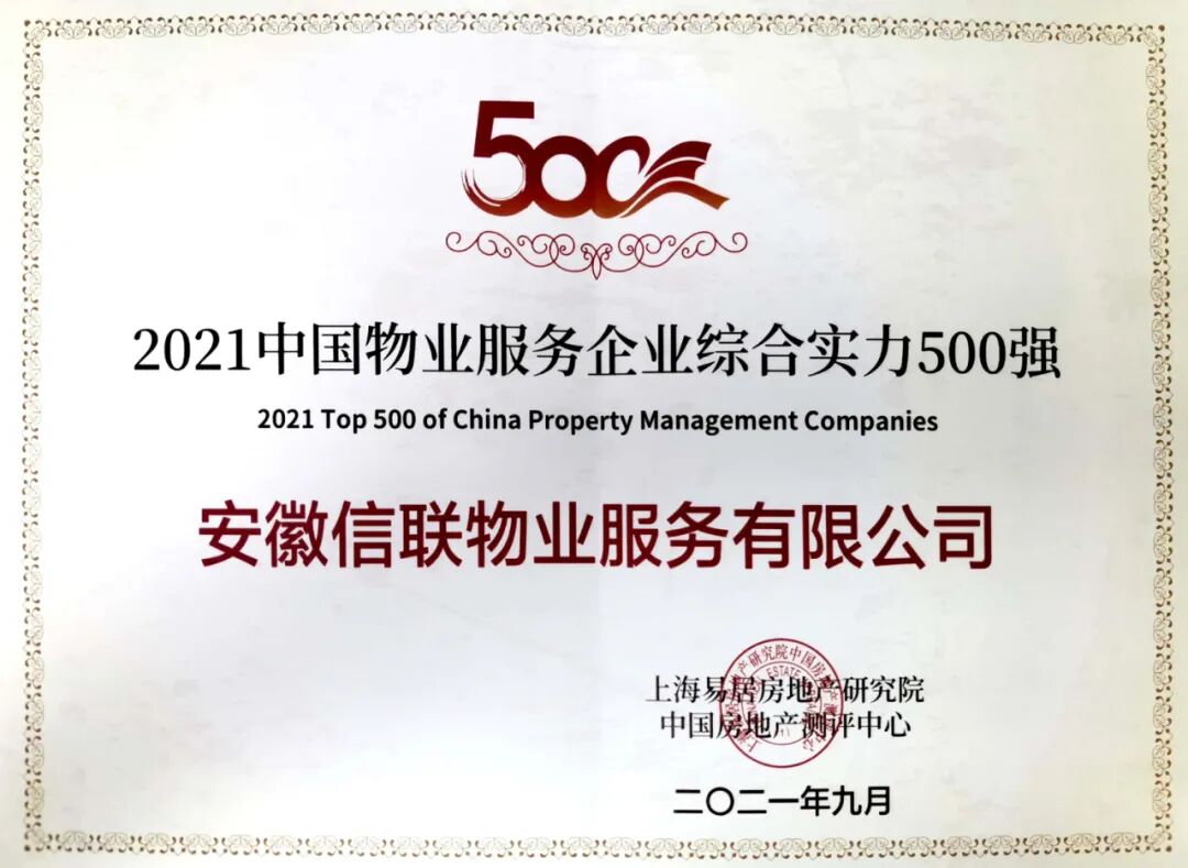 ▲安徽信聯(lián)物業(yè)獲評“2021中國物業(yè)服務(wù)企業(yè)綜合實力500強”